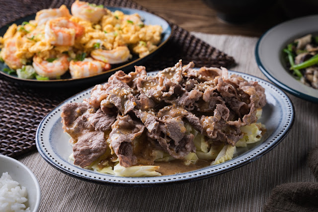 晚餐做了胡麻牛小排、蝦仁炒蛋以及蒜味香菇菠菜,牛小排是昨天傍晚買的肉片,川燙撈起,最後的高麗菜也切絲川燙撈起先盛盤,再放上牛小排肉片淋上胡麻醬,胡麻醬是好市多的黃金芝麻醬,是太太的愛用款,大概已經吃超過五罐有了,這罐真的很好吃,成分也算單純,大家很推的kewpie的美乃滋太重偏甜我真的不愛😂,蝦仁炒蛋做過很多次可以翻太太以前部落格的食譜參考,香菇菠菜是因為菠菜剩兩株炒一盤太少就拿了三朵猴絨香菇一起充數一下,最近很愛在家樂福買這個猴絨香菇,因為它整體很厚很好吃,尤其切很薄口感很棒,大家有看到可以買來試試看唷!